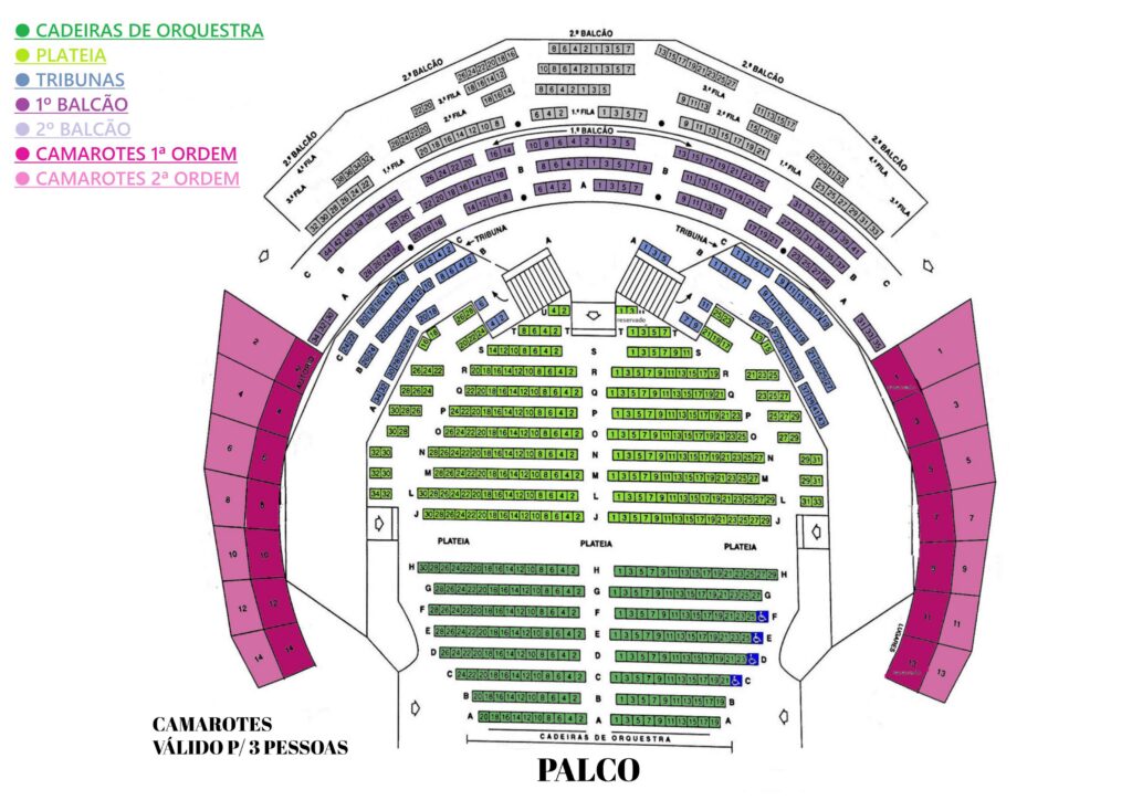 - Camarotes 1ª - 14 lugares (3 em cada) (3 sob reserva - igac)